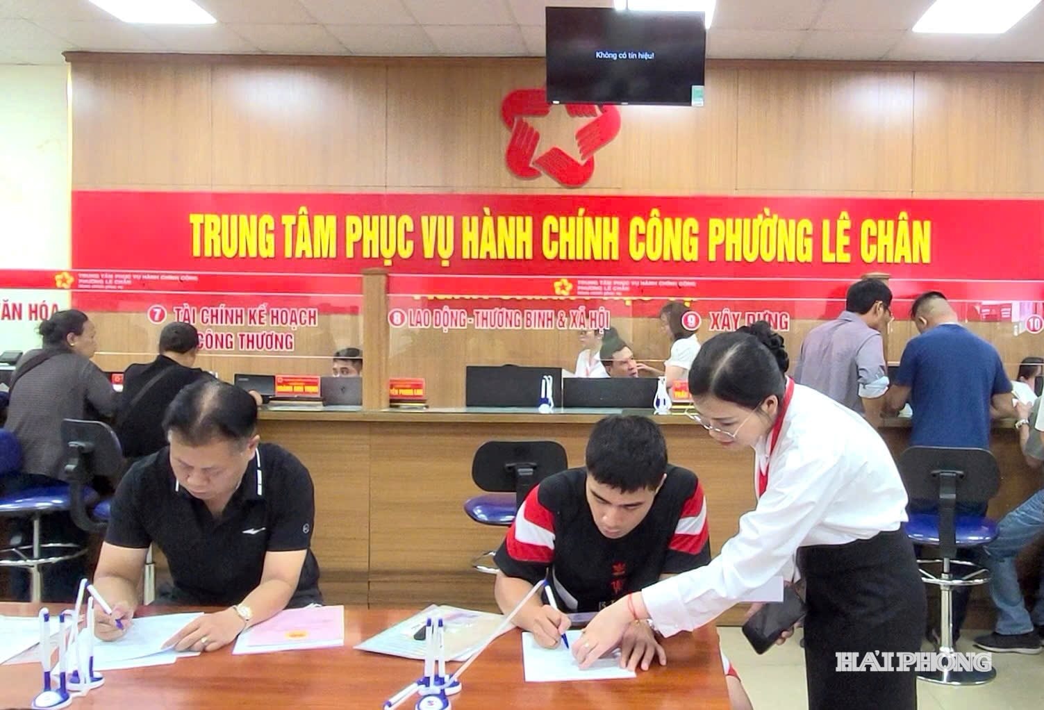 Chỉ số năng lực cạnh tranh cấp tỉnh (PCI) và chỉ số cải cách hành chính (PAR Index) của Hải Phòng liên tục duy trì trong nhóm các địa phương dẫn đầu cả nước. Trong ảnh: Công chức Trung tâm Phục vụ hành chính công phường Lê Chân hỗ trợ người dân thực hiện thủ tục hành chính.