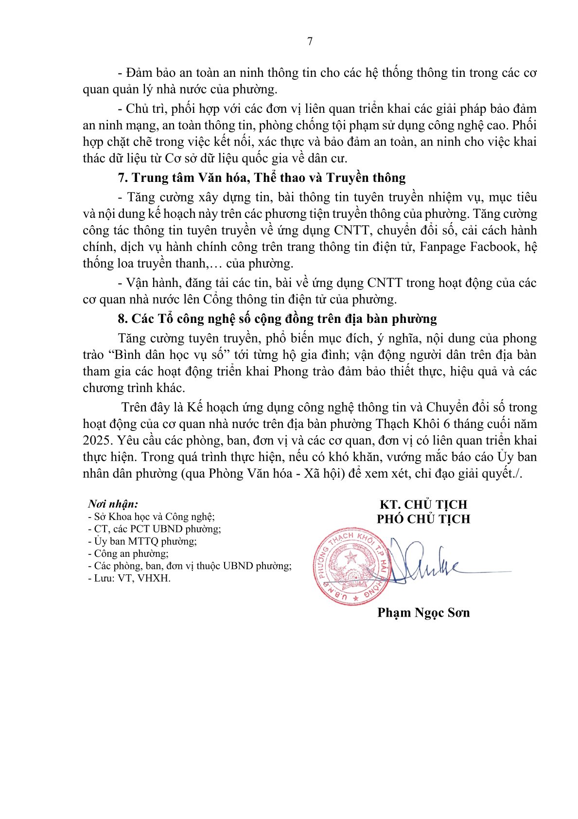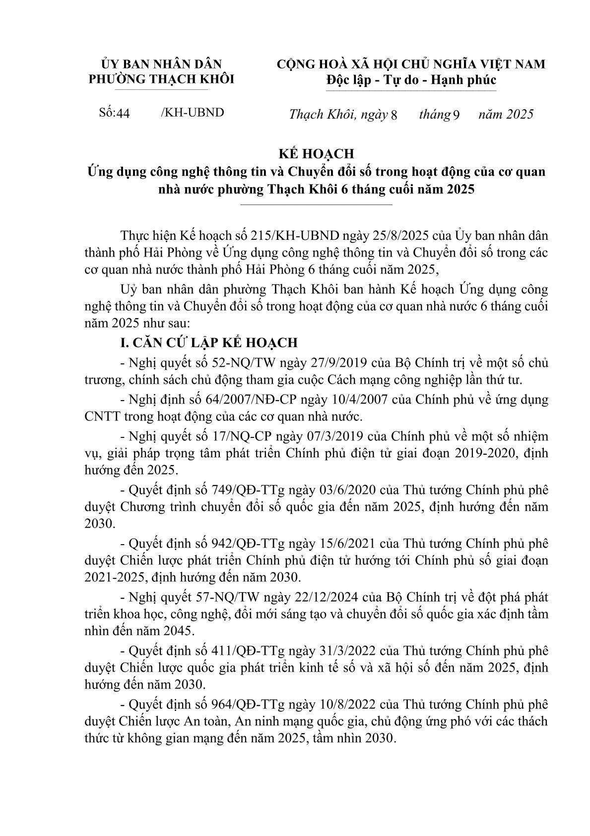 Kế hoạch ứng dụng công nghệ thông tin và chuyển đổi số trong hoạt động của cơ quan nhà nước phường Thạch Khôi 6 tháng cuối năm 2025