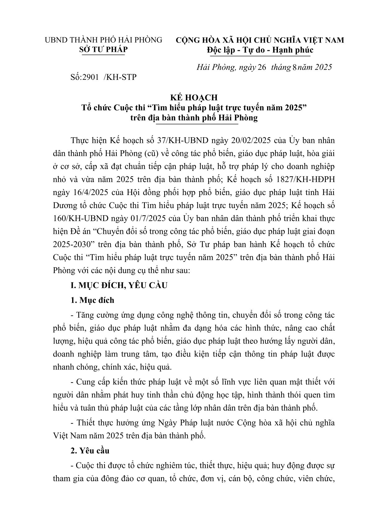 Kế hoạch tổ chức cuộc thi "Tìm hiểu pháp luật trực tuyến năm 2025" trên địa bàn thành phố Hải Phòng