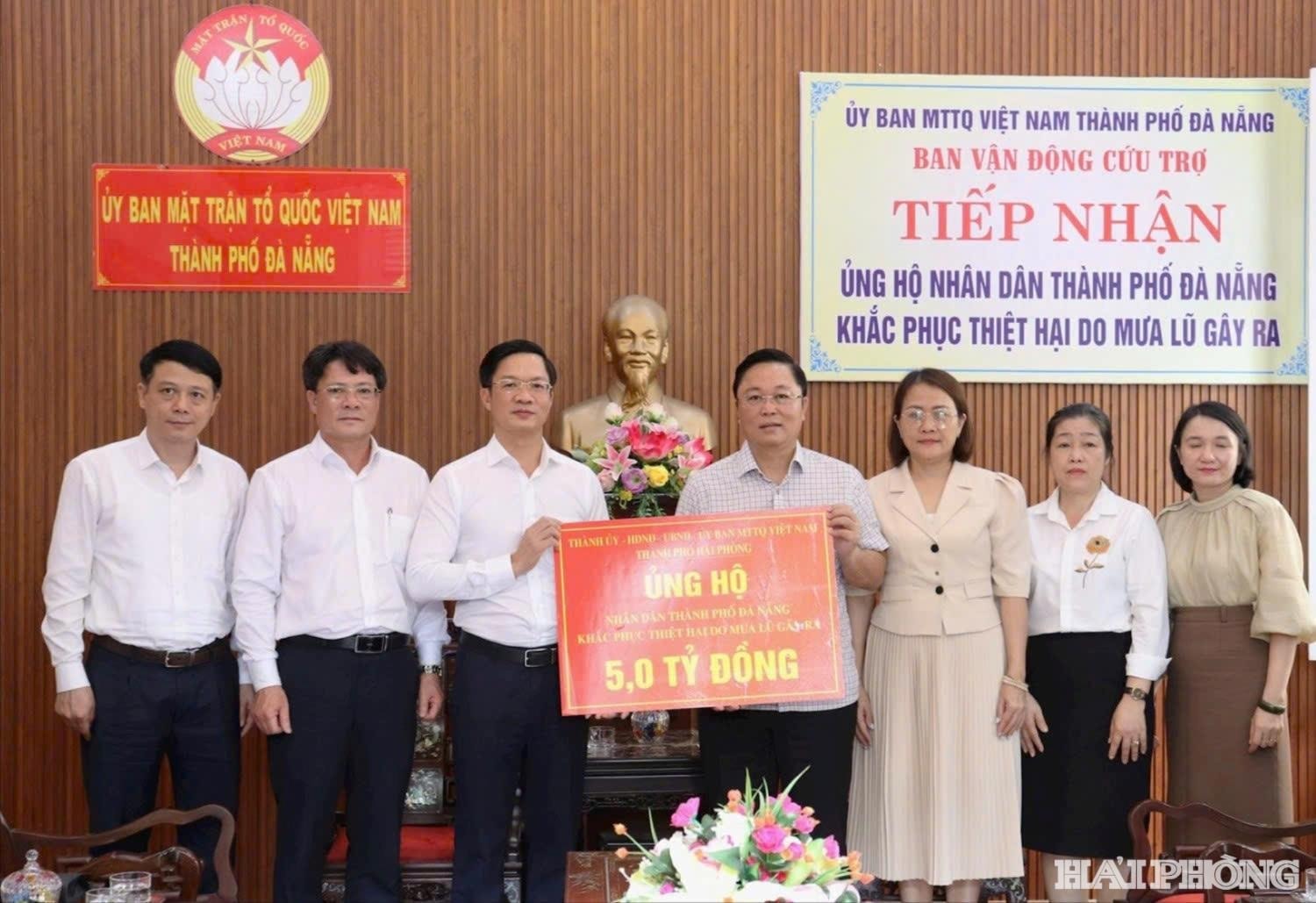 Đồng chí Phạm Văn Lập, Phó bí thư Thành ủy, Chủ tịch Ủy ban MTTQ Việt Nam thành phố Hải Phòng trao kinh phí hỗ trợ thành phố Đà Nẵng.Nghị quyết Đại hội Đảng bộ thành phố lần thứ nhất, nhiệm kỳ 2025 - 2030 đặt mục tiêu đưa Hải Phòng vươn lên mạnh mẽ, phấn đấu trở thành thành phố Cảng hiện đại, văn minh, sinh thái và đáng sống tầm cỡ khu vực Đông Nam Á vào năm 2030. Để thực hiện thắng lợi mục tiêu, MTTQ Việt Nam và các tổ chức chính trị - xã hội các cấp thành phố cần chủ động, sáng tạo, đổi mới toàn diện phương thức hoạt động theo mô hình mới, đáp ứng yêu cầu, nhiệm vụ trong giai đoạn phát triển mới.