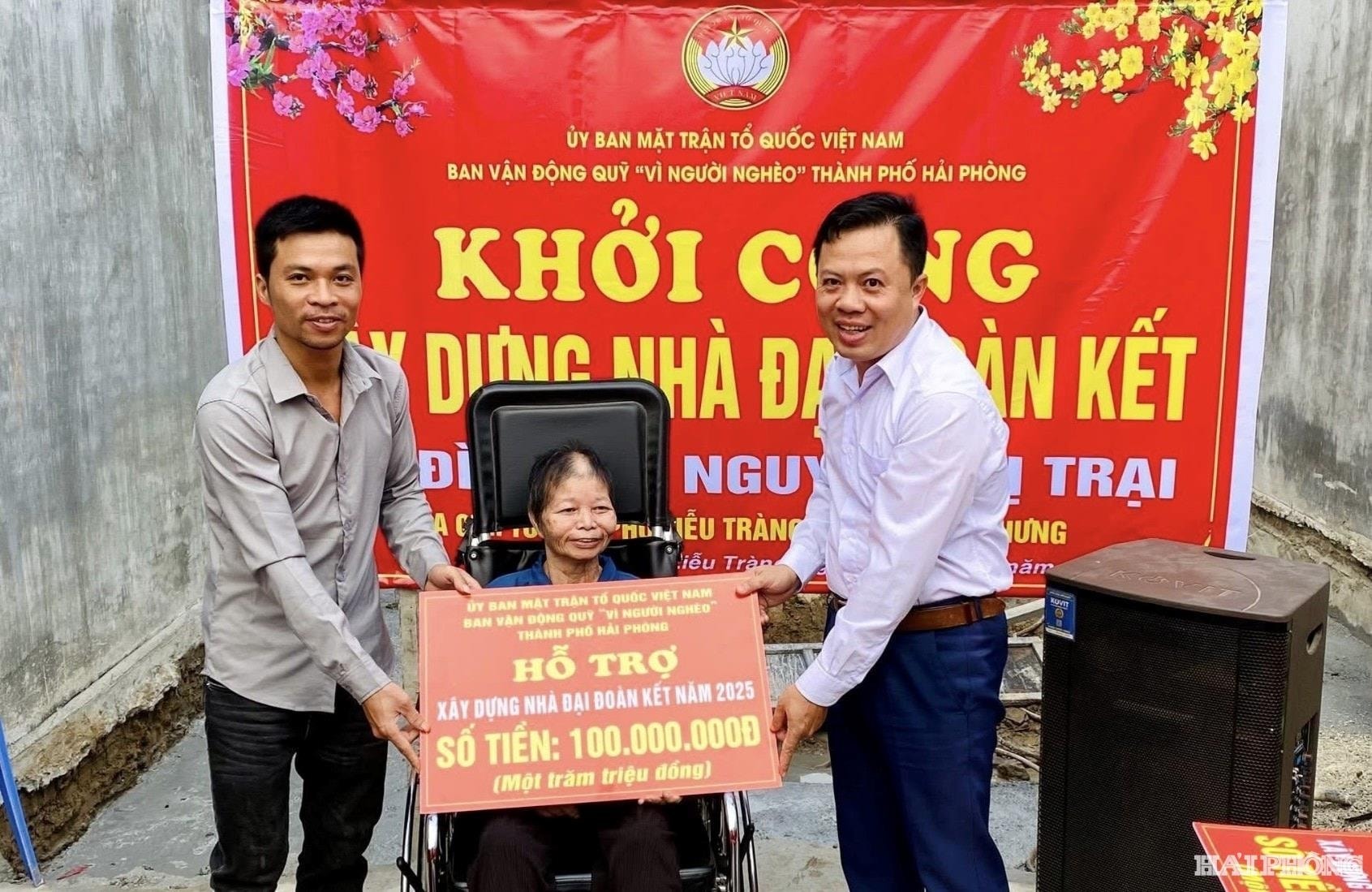 Đại diện Ủy ban MTTQ Việt Nam thành phố trao kinh phí xây nhà "Đại đoàn kết" tặng bà Nguyễn Thị Trại ở phường Tân Hưng. Ảnh: NGUYỄN LANCông tác giảm nghèo bền vững tiếp tục là điểm sáng trong hoạt động của Mặt trận. Các cấp Mặt trận vận động xây mới, sửa chữa 1.929 nhà "Đại đoàn kết"; trao tặng hơn 340.700 suất quà với tổng trị giá trên 486,6 tỷ đồng. Với cách làm công khai, minh bạch, đúng đối tượng, thành phố hoàn thành mục tiêu giảm nghèo sớm một năm so với Nghị quyết Đại hội 16 Đảng bộ thành phố; tỉnh Hải Dương (cũ) hoàn thành xóa nhà tạm, nhà dột nát sớm hơn 2,5 tháng.