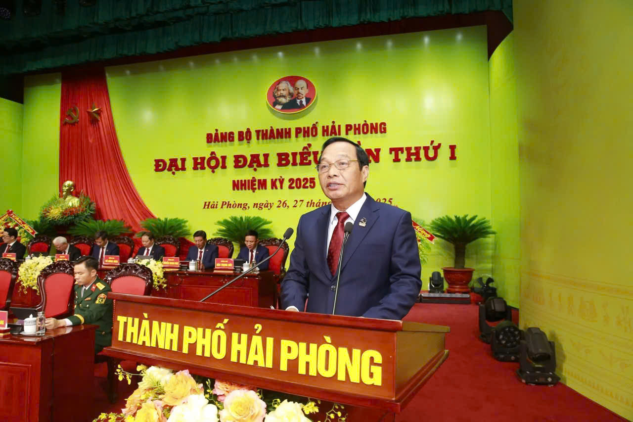 Sáng 26/9, tại Trung tâm Hội nghị - Biểu diễn thành phố ở phường Thủy Nguyên (TP Hải Phòng), thực hiện Chỉ thị số 45-CT/TW ngày 14/4/2025 của Bộ Chính trị về đại hội đảng bộ các cấp tiến tới Đại hội đại biểu toàn quốc lần thứ 14 của Đảng; được sự đồng ý của Bộ Chính trị, Đại hội đại biểu Đảng bộ thành phố Hải Phòng lần thứ I, nhiệm kỳ 2025 - 2030 làm việc ngày thứ nhất.