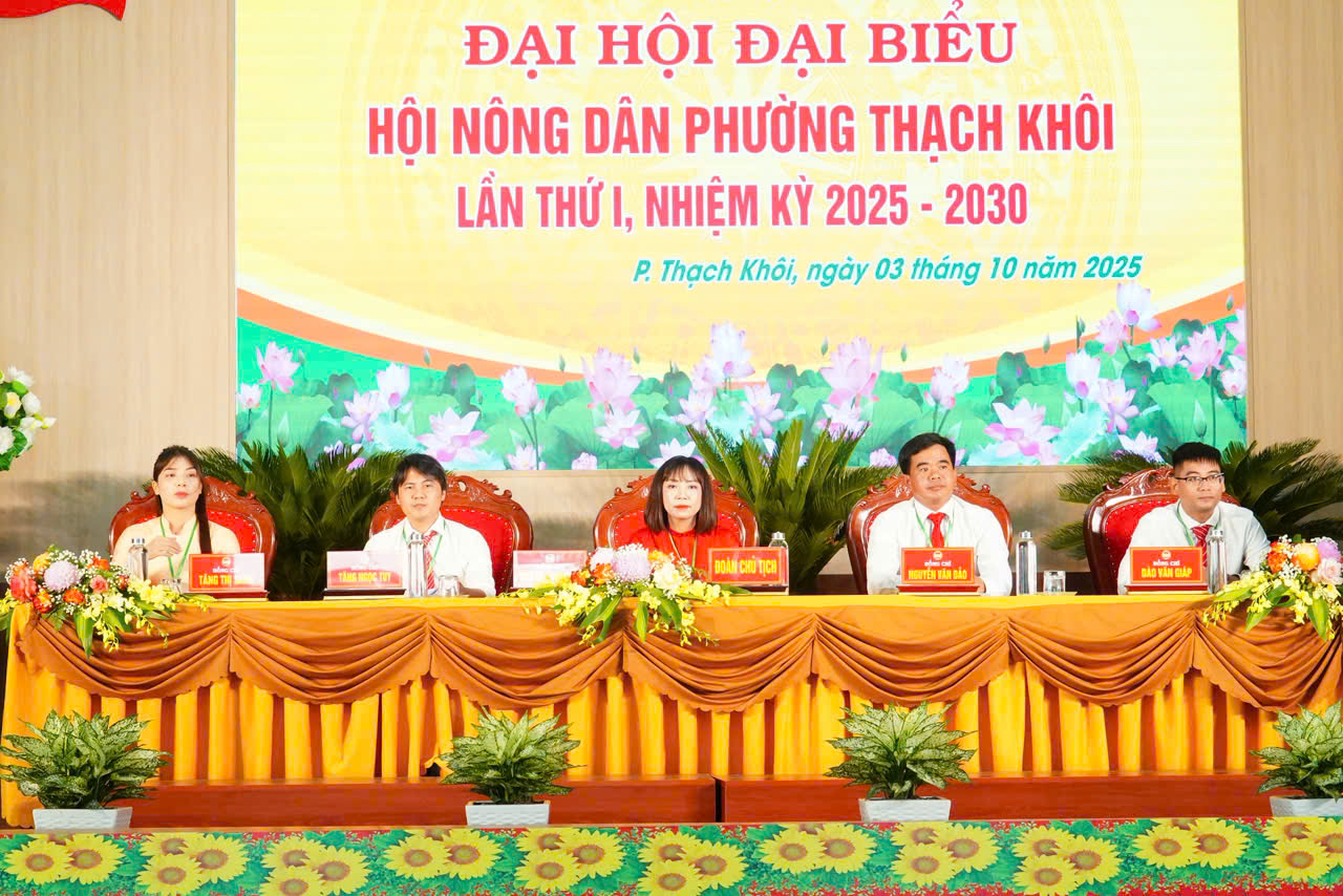 Ngày 3/10, Hội Nông dân phường Thạch Khôi đã tổ chức Đại hội đại biểu lần thứ I, nhiệm kỳ 2025-2030. Dự và chỉ đạo đại hội có đồng chí Đào Xuân Anh - Phó Chủ tịch Hội Nông dân thành phố; đồng chí Nguyễn Văn Kiên - Bí thư Đảng uỷ, Chủ tịch HĐND; đồng chí Nguyễn Vũ Xuân Thi - Phó Bí thư thường trực Đảng uỷ; Đồng chí Tăng Văn Quản - Phó Bí thư Đảng uỷ, Chủ tịch UBND phường, cùng 128 đại biểu đại diện cho trên 8.300 hội viên, nông dân trên địa bàn.