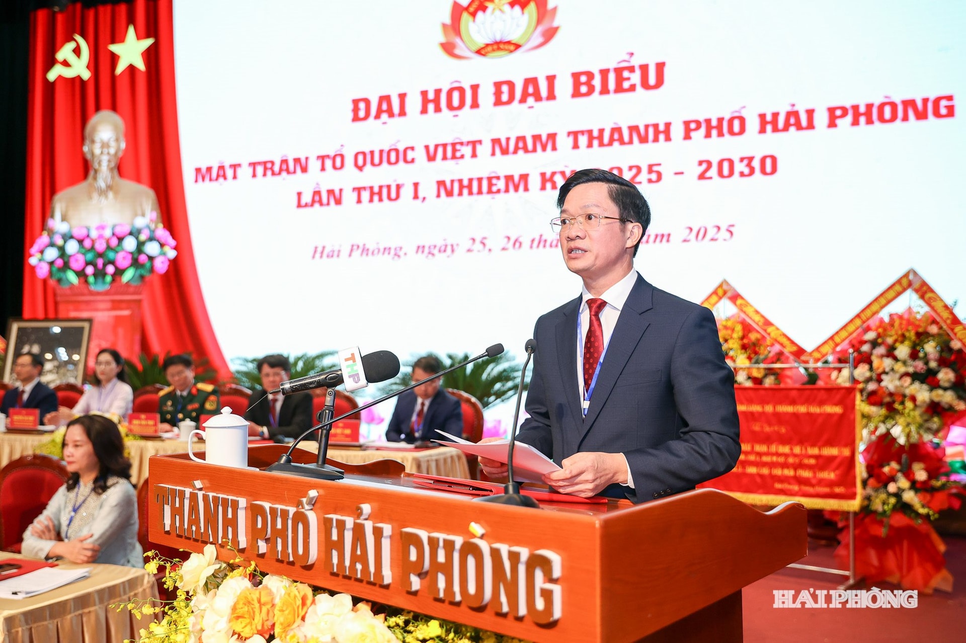 Đồng chí Nguyễn Thị Thu Hà, Uỷ viên Trung ương Đảng, Phó chủ tịch, Tổng Thư ký Uỷ ban Trung ương MTTQ Việt Nam phát biểu tại đại hội.Các đồng chí nhấn mạnh giai đoạn 2026 - 2030 đánh dấu bước chuyển quan trọng đối với thành phố, điều kiện và nguồn lực hội tụ để Hải Phòng bứt phá mạnh mẽ như kỳ vọng của nhiều thế hệ lãnh đạo và nhân dân. Để hoàn thành những mục tiêu lớn lao đó, Hải Phòng cần một nền tảng đồng thuận xã hội vững chắc, trong đó MTTQ Việt Nam các cấp thành phố giữ vai trò hạt nhân kết nối và phát huy sức mạnh của nhân dân.
