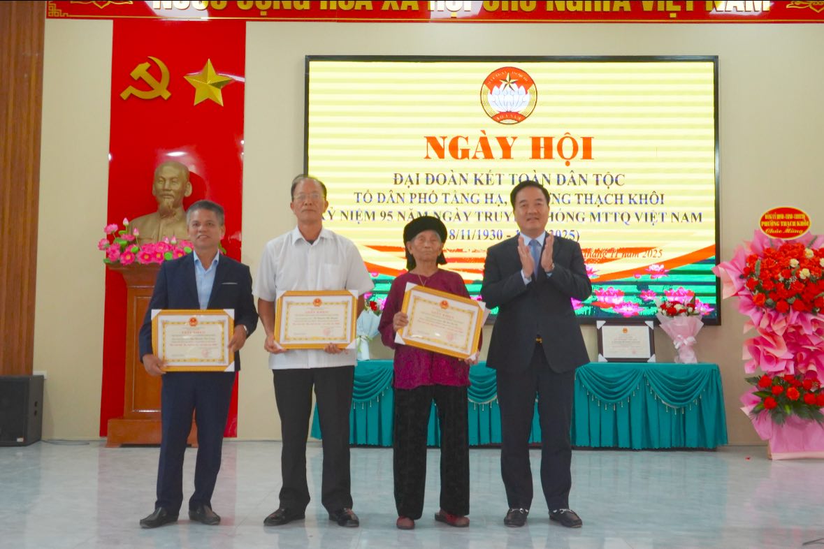 Trong dịp này, Tổ dân phố Tằng Hạ vinh dự được công nhận “Tổ dân phố văn hoá”; 3 gia đình văn hoá tiêu biểu và các tập thể, cá nhân có thành tích trong công tác Mặt trận được tặng giấy khen.