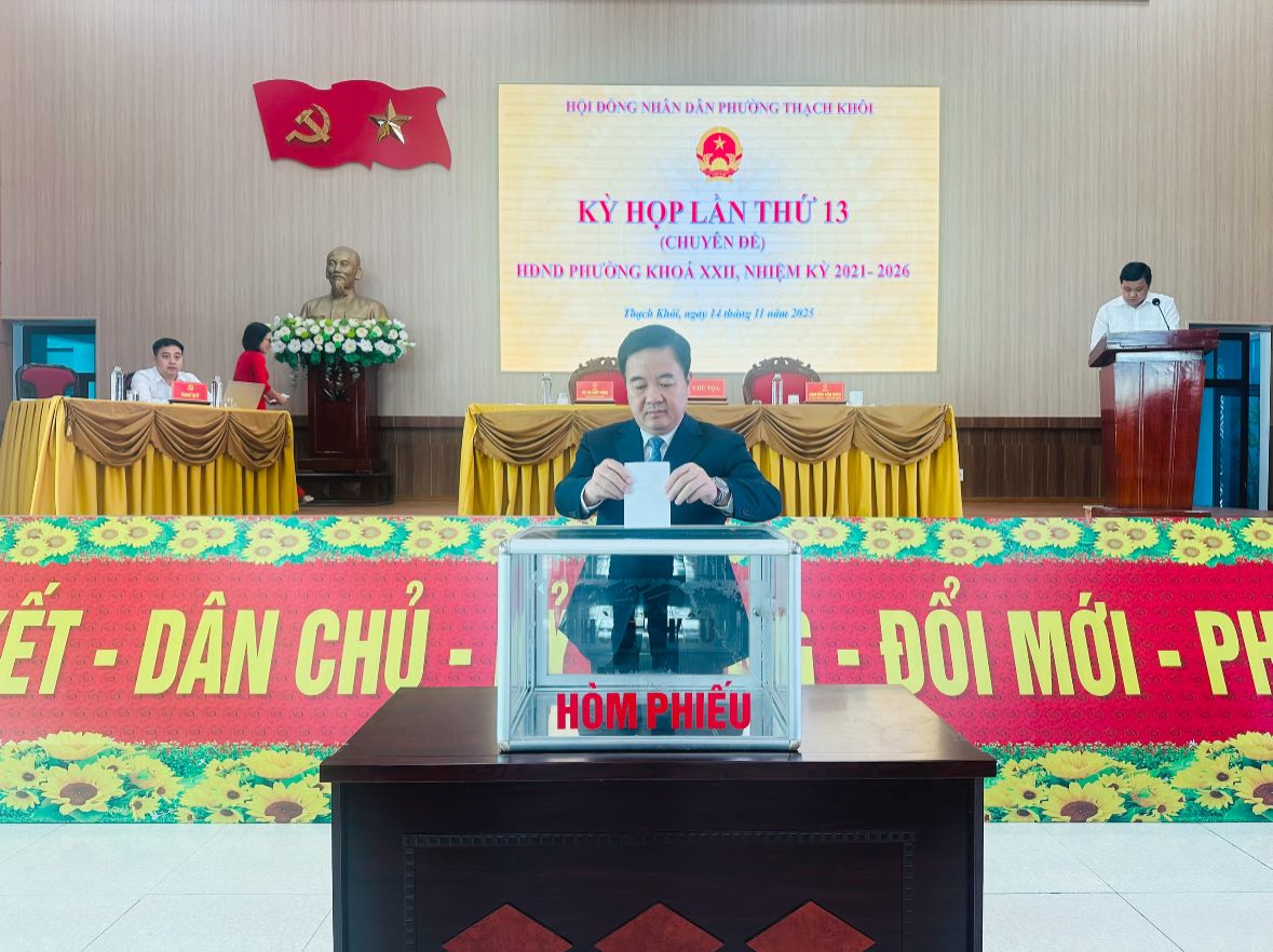 Với tinh thần làm việc dân chủ, trách nhiệm, Kỳ họp đã thông qua 4 nghị quyết: Nghị quyết về bầu bổ sung chức danh Uỷ viên UBND phường Thạch Khôi khoá XXII, nhiệm kỳ 2021-2025; Nghị quyết về điều chỉnh dự toán chi ngân sách phường năm 2025; Nghị quyết phê duyệt điều chỉnh, bổ sung kế hoạch đầu tư công trung hạn 2021-2025 và điều chỉnh, bổ sung kế hoạch đầu tư công năm 2025; Nghị quyết điều chỉnh kế hoạch vốn đầu tư công trung hạn 2021-2025 và nguồn vốn đầu tư công năm 2025 nguồn vốn ngân sách phường.