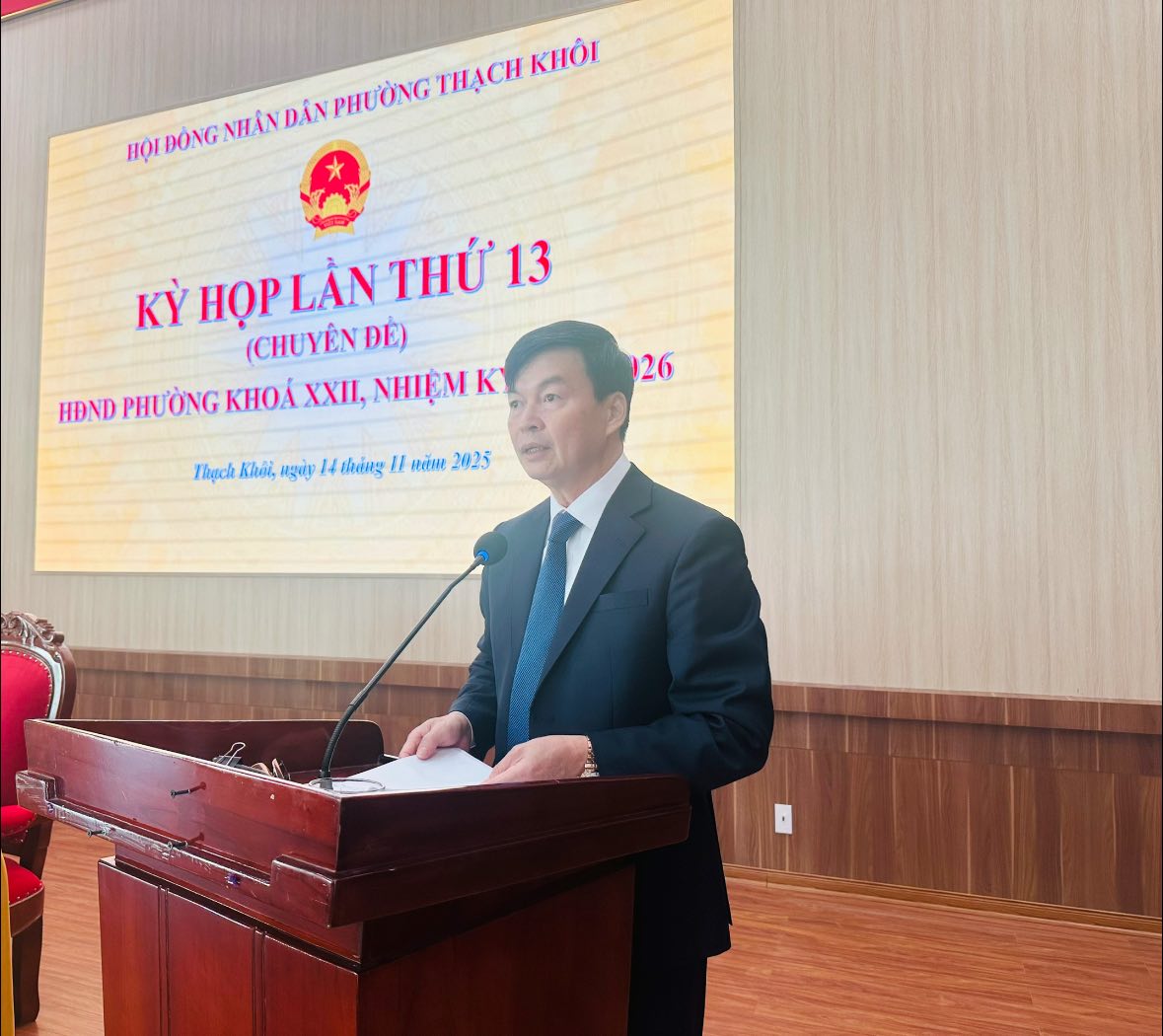 Ngày 14/11, HĐND phường Thạch Khôi khoá XXII, nhiệm kỳ 2021-2026 tổ chức kỳ họp thứ 13 (kỳ họp chuyên đề). Đồng chí Nguyễn Văn Kiên - Bí thư Đảng uỷ, Chủ tịch HĐND phường chủ toạ kỳ họp. Tham dự, có đồng chí Tăng Văn Quản - Phó Bí thư Đảng uỷ, Chủ tịch UBND phường cùng lãnh đạo UBND, Uỷ ban MTTQ, các phòng, ban chuyên môn của phường.