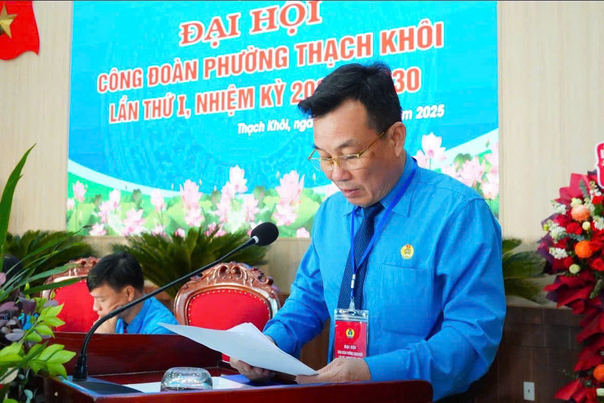Ngày 21/10, Công đoàn phường Thạch Khôi tổ chức Đại hội lần thứ I, nhiệm kỳ 2025 – 2030. Đến dự, có các đồng chí: Nguyễn Văn Phiệt – Phó Chủ tịch Liên đoàn Lao động thành phố; Nguyễn Văn Kiên – Bí thư Đảng uỷ, Chủ tịch HĐND phường; Tăng Văn Quản – Phó Bí thư Đảng uỷ, Chủ tịch UBND phường.