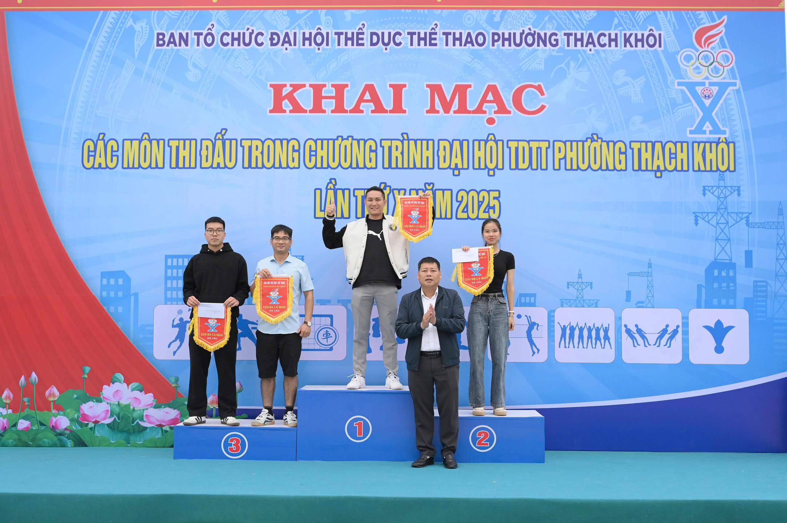 Sáng 25/10, phường Thạch Khôi trọng thể khai mạc Đại hội Thể dục thể thao lần thứ X năm 2025. Tới dự buổi lễ, có các đồng chí: Nguyễn Văn Kiên - Bí thư Đảng uỷ, Chủ tịch HĐND phường; Nguyễn Vũ Xuân Thi - Phó Bí thư Thường trực Đảng uỷ; Tăng Văn Quản - Phó Bí thư Đảng uỷ, Chủ tịch UBND phường.