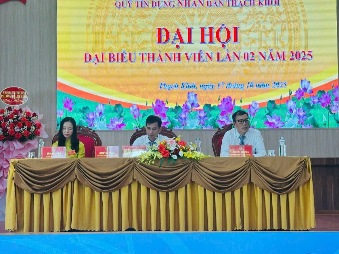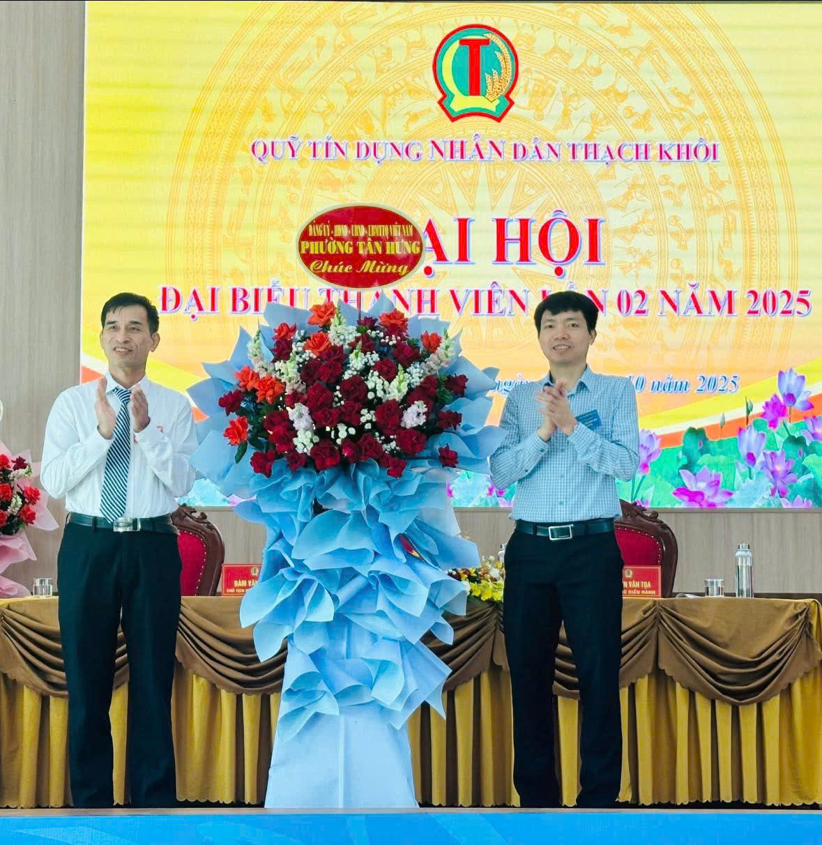 Ngày 17/10, Quỹ tín dụng nhân dân Thạch Khôi tổ chức Đại hội đại biểu thành viên lần thứ 2 năm 2025. Tới dự, có đại diện Ngân hàng Nhà nước Chi nhánh khu vực 6; đồng chí Vũ Công Thản – Phó Bí thư Đảng uỷ, Chủ tịch UBND phường Tân Hưng; đồng chí Tăng Văn Quản – Phó Bí thư Đảng uỷ, Chủ tịch UBND phường Thạch Khôi.